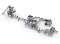Verpakkingslijn voor snoep en suikergoed, inclusief automatische verpakking en doosverpakking.