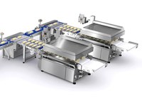 Door de hoge productiviteit van het FLOW-VAC®-systeem kan zelfs het laden van maximaal twee vacuümkamers worden geautomatiseerd door gebruik te maken van twee 90º-overdrachtssystemen.