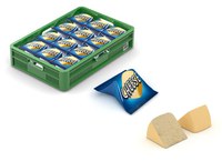 Complete lijn voor volautomatisch verpakken van kaaswiggen in een flowpacker