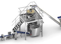 Het product stijgt naar de multi-head combinatieweger die de benodigde doses voor elke zak maakt en het product overbrengt naar de verticale verpakkingsmachine.