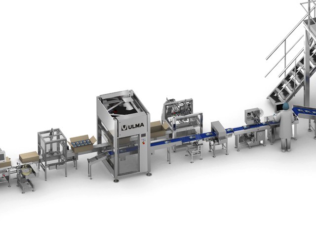 De dozenopzetter produceert kartonnen dozen die door middel van transportelementen naar de dozenverpakkingscel worden gestuurd. Op dit punt behandelt een robot de binnenkomende producten en plaatst deze in de lege doos. Hiervoor heeft de robot een grijper die, naast het plaatsen van het product in de doos, ervoor zorgt dat het product correct wordt achtergelaten en de doos er compleet uit komt. Aan het einde ervan wordt de doos gesloten in het sluitersysteem.