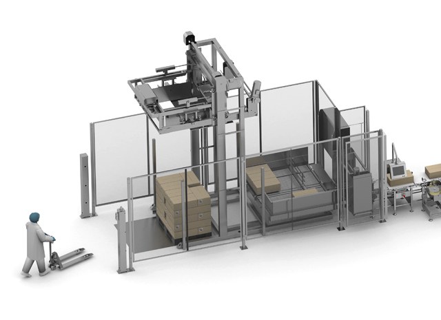 Ten slotte worden door middel van een mechanisch palletiseersysteem de pallets met dozen gestapeld.
