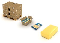 De verpakkingslijn begint met een kaasrasp, waarvan het resultaat wordt opgepikt door een band die automatisch de stroom ontvangen kaas afmeet en antiklontermiddel (meestal aardappelzetmeel) toevoegt in de juiste verhouding toevoegd,