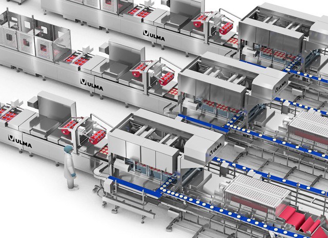 Volledig geautomatiseerde totaaloplossing voor verse kaas bestaande uit drie verpakkingslijnen met thermoformers.
