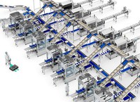 De complete automatiseringsoplossing van de verpakkingsfabriek omvat zeven verpakkingslijnen voor kipfilet.