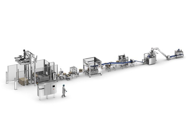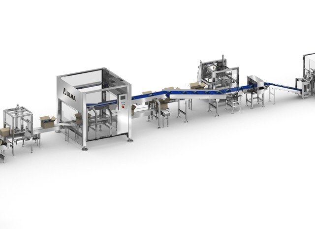 De lijn bestaat uit dozenopzetter voor kartonnen dozen, gerobotiseerde casepackcel en dozensluitsysteem. Allemaal perfect geïntegreerd in de lijn zodat het proces volledig automatisch verloopt.
