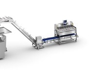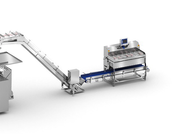 Het weegsysteem stelt de juiste hoeveelheid voor het gewenste gewicht vast. Zo ontvangt de band in elke bak het aantal product van het juiste gewicht van elke verpakking.