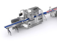 Een 90 ° transfersysteem koppelt de pakketten in de bufferband van de vacuümkamer zodat beide sealbalken kunnen worden gebruikt. Als de producten niet klein genoeg zijn om te worden gekoppeld, laadt een automatisch detectiesysteem het product als een enkel item.