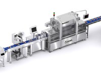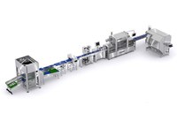 Complete verpakkingslijn voor volautomatische vleesfilets in trays.
