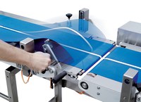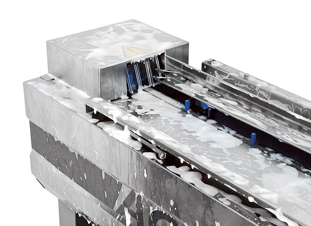 - Machine gebouwd op inox frame in cantilever uitvoering om te vermijden dat vuil en stof opstapelt en hierdoor een optimale reiniging en hygiëne te garanderen
