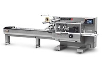 Deze horizontale flowpacker (HFFS) maakt een kussenvormige verpakking met 3 seals op hoog productieniveau.