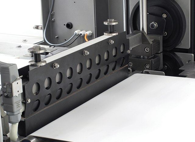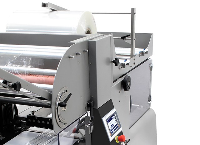 - Uitgerust met een dubbele folierolhouder voor rollen tot 850 mm breed en een diameter van 350 mm.