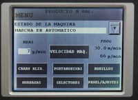 An industrial PC control system includes a simple and quick communication system through touch sensitive screen which provides constantly a complete diagnostics of the status machine and the control parameters.