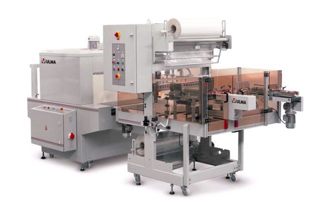 Automatic in line sleeve wrapper ULMA brand, model SVAGT, of modular design, to wrap with flat shrink film different kinds of products in groups and piled in heights.