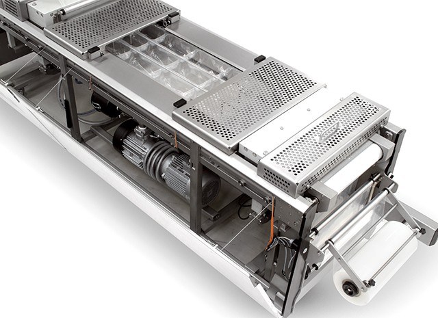 Hygiënische thermoformer voor flexibele of rigide folie met MAP of vacuümopties. De meest economische oplossing met dezelfde voordelen als de rest van de dieptrekmachines.