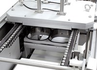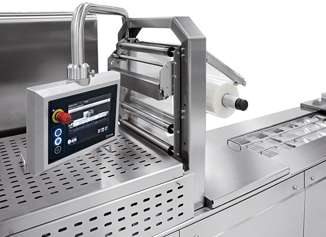 Hygiënische dieptrekmachine voor flexibele en rigide folie met opties voor MAP en vacuüm verpakkingen.