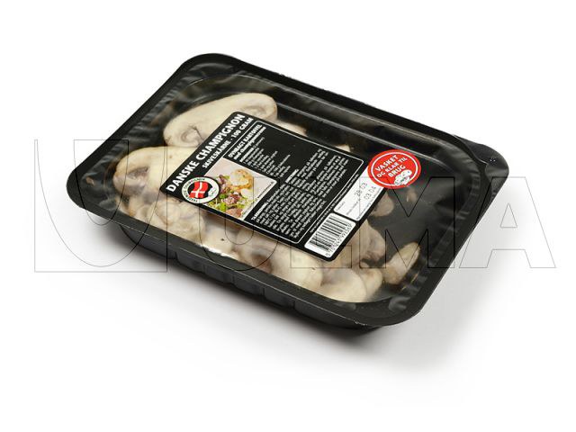Gesneden champignons verpakt met thermoformer 1912_1.jpg TFS 600 Thermoformer voor flexibele of rigide folie met opties voor MAP en vacuüm. Voor grote producties.